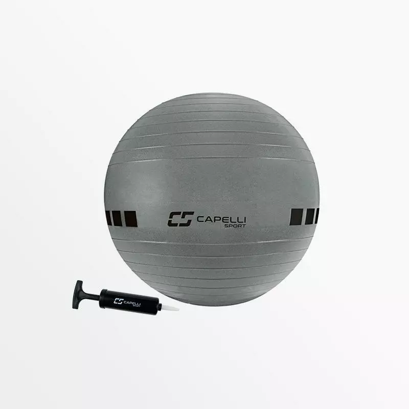 65cm Exercise Ball for core workouts and balance. The Capelli Sport Exercise Ball is crafted with anti-burst technology for improved quality and durability. Use the ball for a variety of low impact exercises aimed at toning muscles and improving balance and posture.