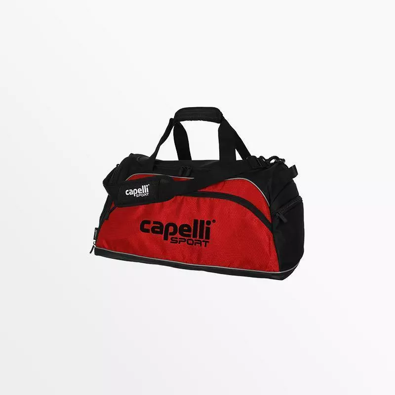 • Adjustable straps at each edge of the back with smaller handles in the center of the duffle