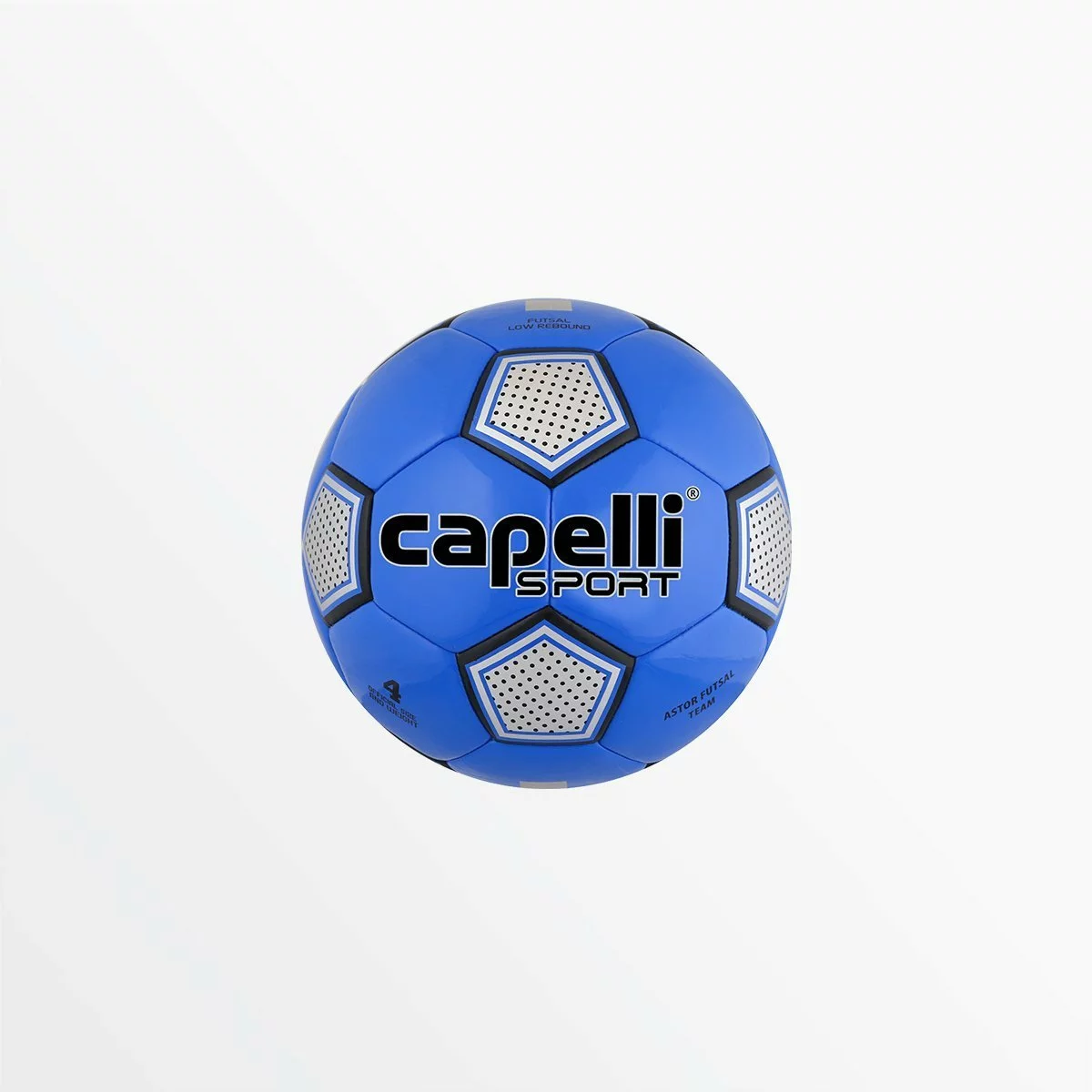 The Astor Futsal Team Ball is our most basic design ideal for practices and newer athletes. The machine stitched ball is constructed out of shiny PU, non-woven backing and fiber filling for low rebound.