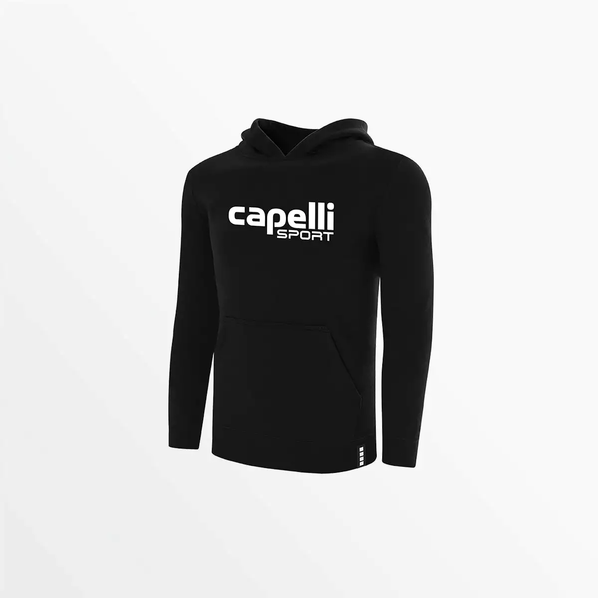 An updated take on the classic pullover hoodie, the Capelli Sports Men’s Logo Fleece Pullover Hoodie features a modern, non-bulky cut. Ribbed cuffs and bottom will keep it in place while you stretch out, and a warm drawstring hood provides extra coverage when you need it. Other perks include super-soft fleece fabric and a large center pocket.