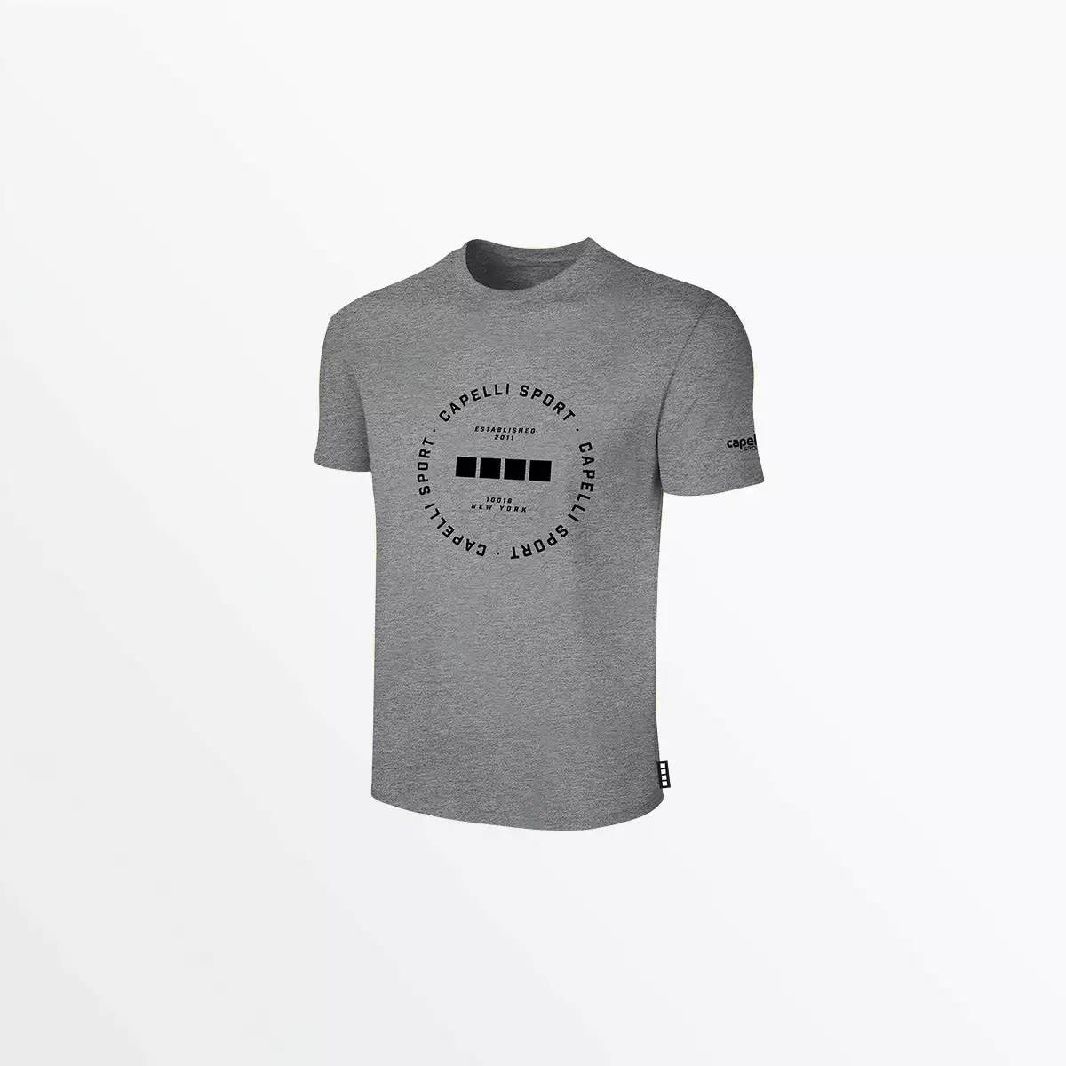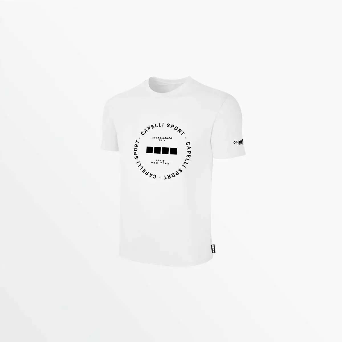 100% cotton classic crew-neck short sleeve tee for everyday wear, now available with fresh new prints. The circular Capelli Sport text surrounding our signature 4-Cube logo gives these basic tees a modern and graphic update, adding subtle interest to any outfit.