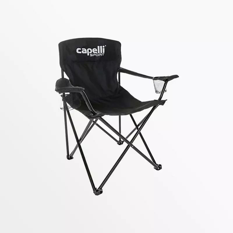 Bring your own seating to games with the Capelli Sport Folding Chair. Built with durable nylon material over a sturdy steel frame, mesh cup holders store your snacks and beverages, while the included carrying case allows for easy transport and storage.