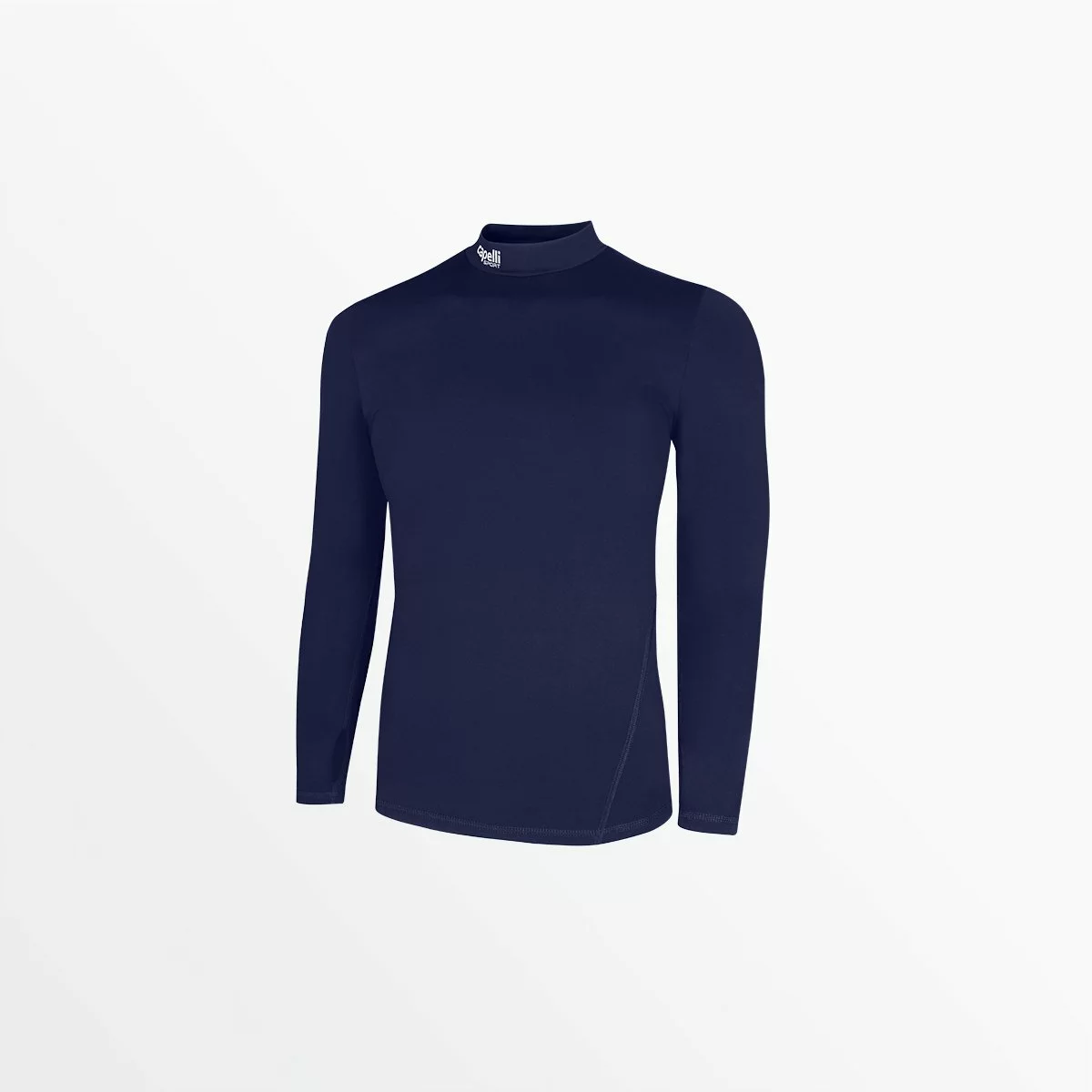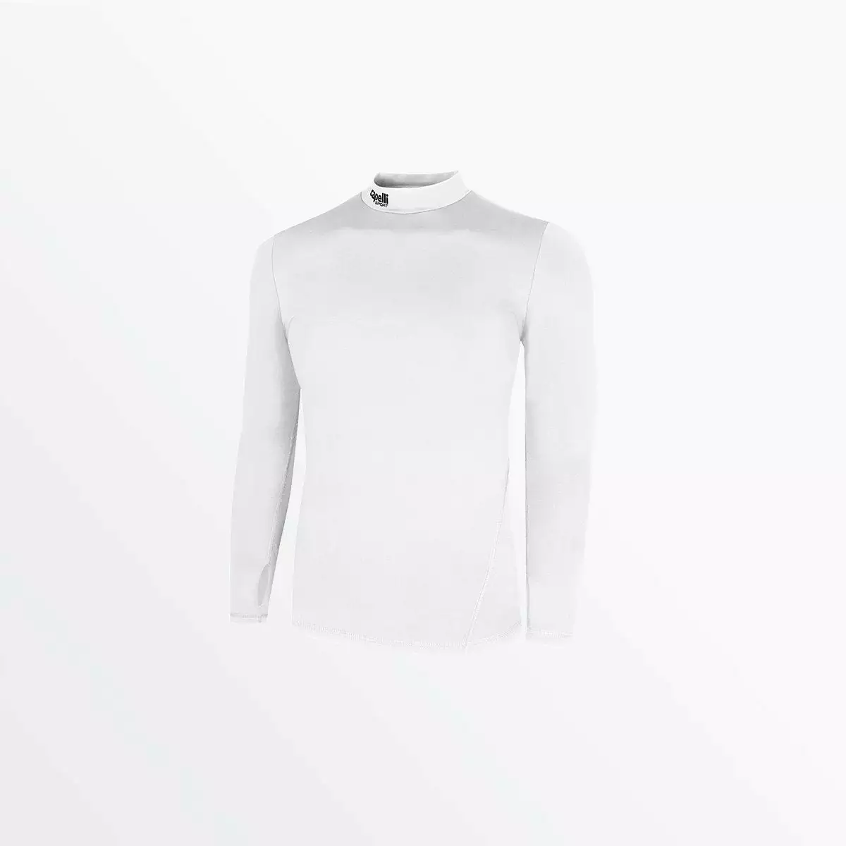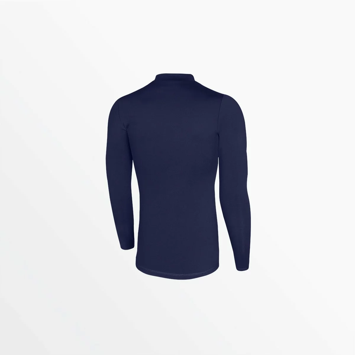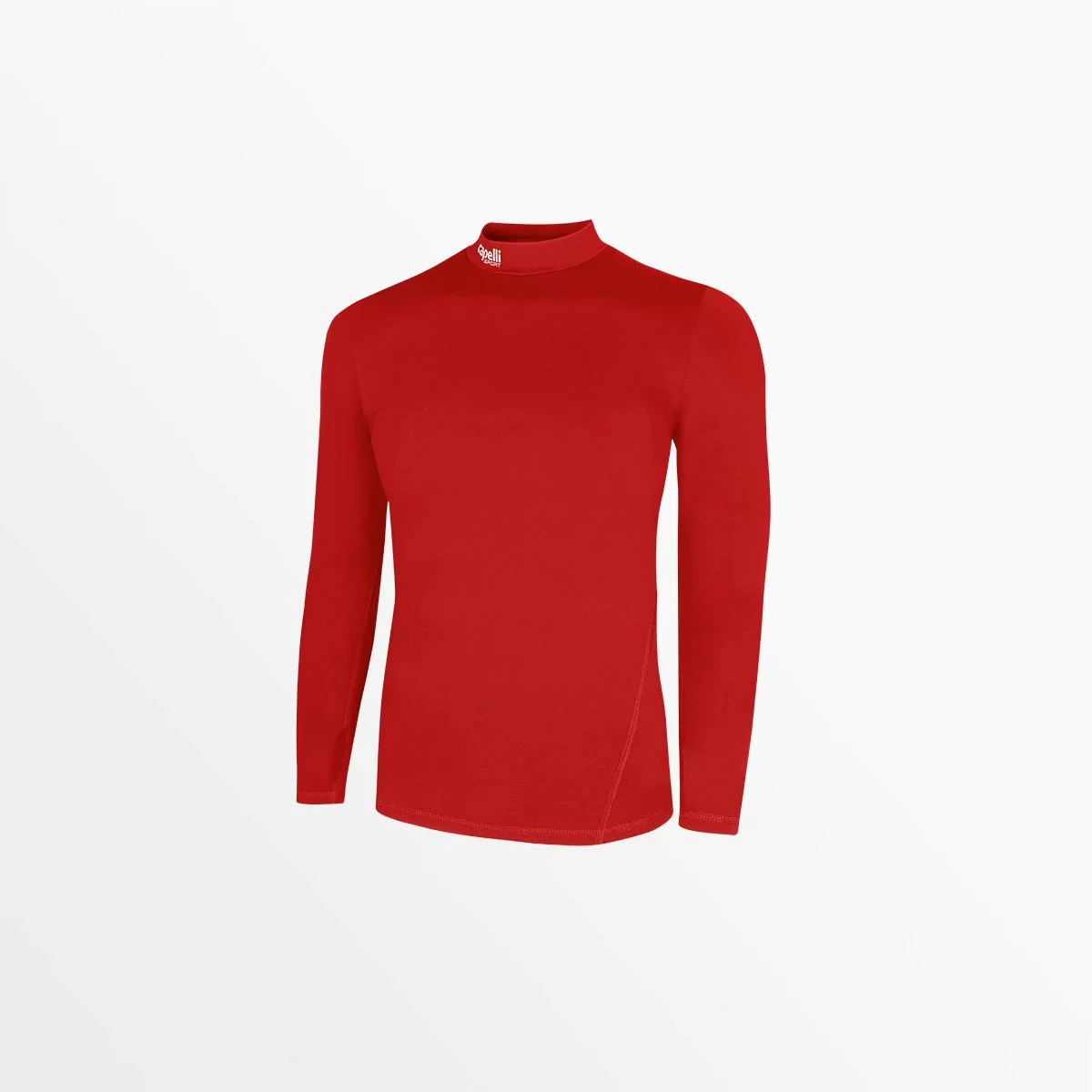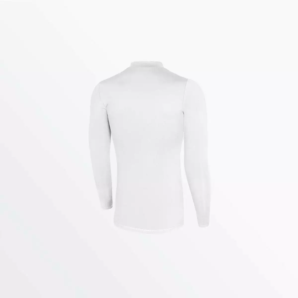 The mock turtleneck and brushed backing material of the Warm Turtleneck Performance Top helps to lock in heat to keep your muscles warm during colder practices and game days. The tight body fit and built-in thumbholes add extra support and comfort.