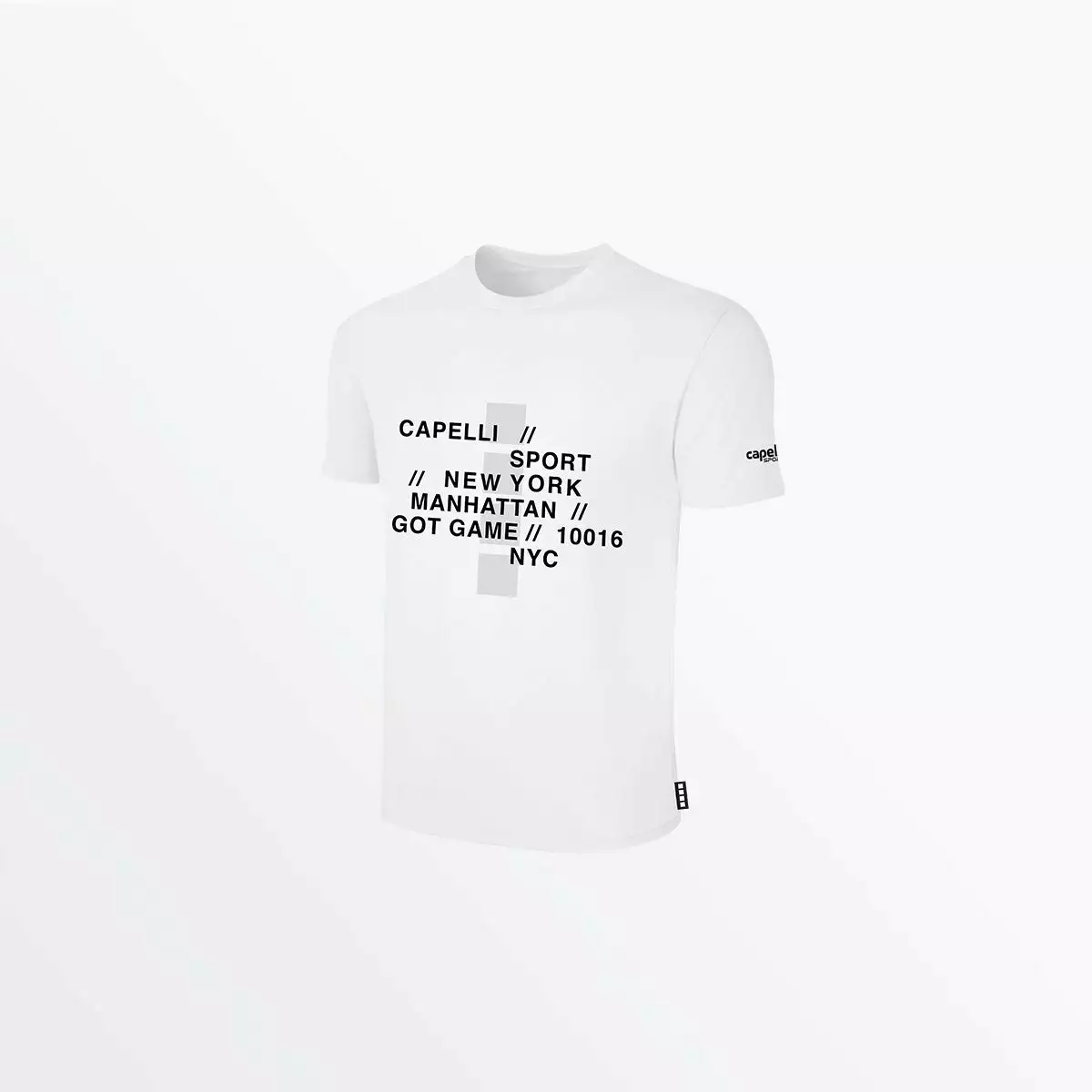 100% cotton classic crew-neck short sleeve tee for everyday wear, now available with fresh new prints. The vertical gray 4-Cube design with contrasting text gives this basic tee a modern and graphic update, adding subtle interest to any outfit.