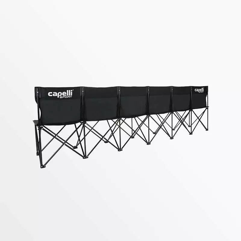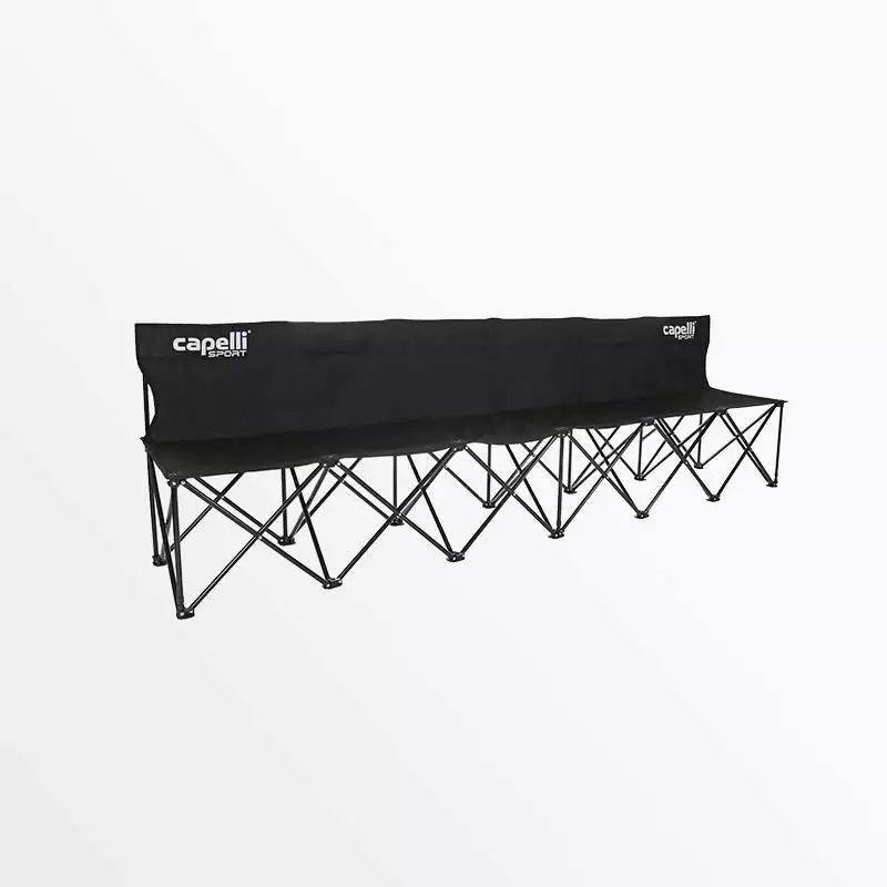 Easy to fold and transport, the Capelli Sport Folding Team Bench seats six people and is built out of durable nylon material over a sturdy steel frame. Use the included carrying case to pack it away at the end of the day and easily transport to the next game.