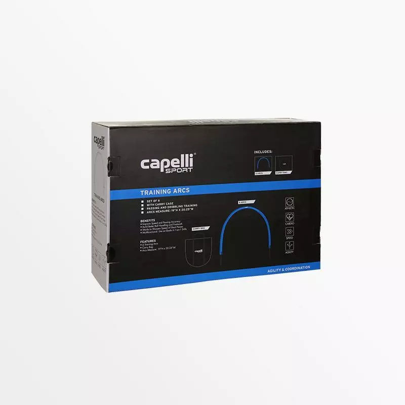 Perfect your passing and dribbling skills with the Capelli Sport Training Arcs. The pack of 6 allows for creative set ups to cover all of your drills. Retractable spikes keep arcs firmly in the ground while you go to work.