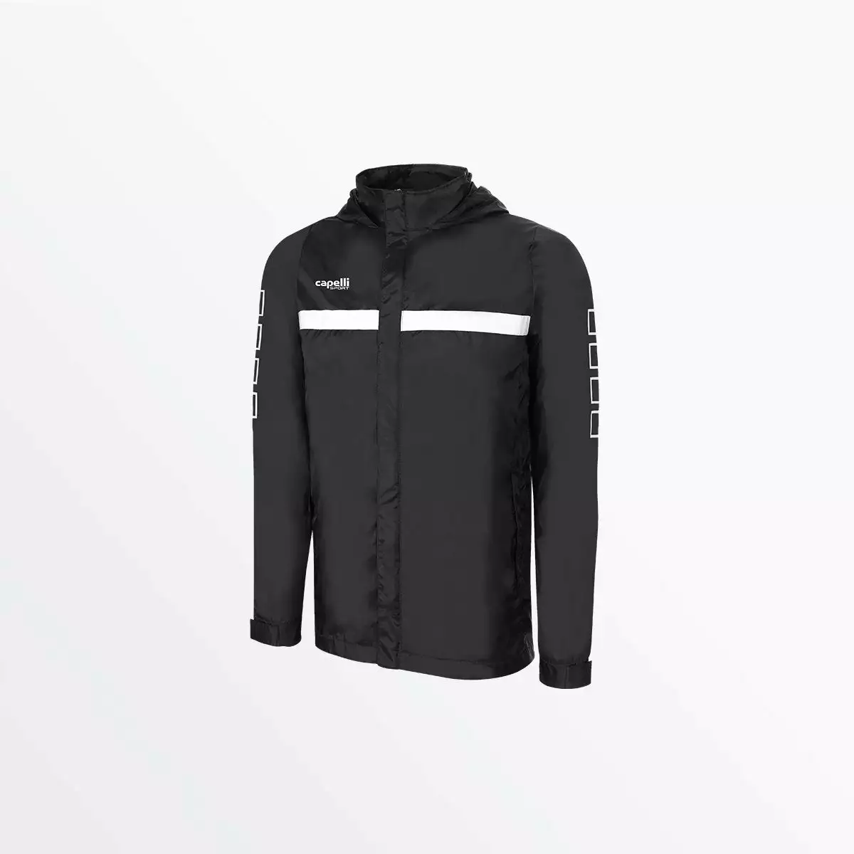 The Capelli Sport Sparrow Rain Jacket will keep you warm and dry during rainy days. Featuring a roll up hood, mesh lining, pockets and an adjustable bottom draw cord constructed from wind and water resistant material.