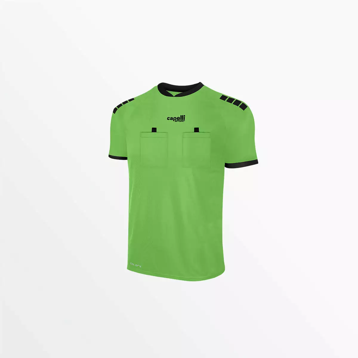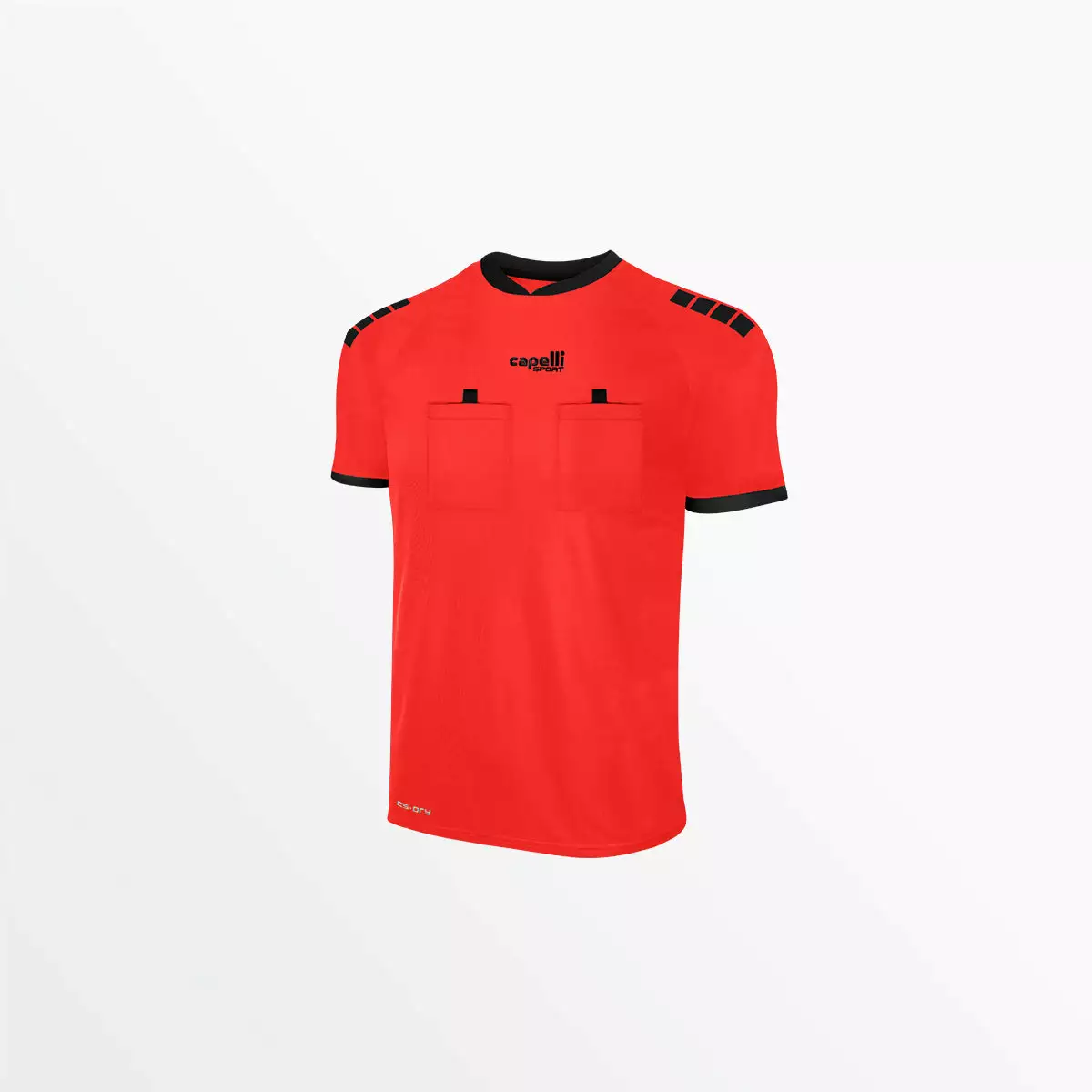 The Capelli Sport Basics Referee Short Sleeve Jersey is designed for elite level officiating in a similar style to professional referee uniforms. Interlock fabric provides durability with contrasting sleeve cuffs and collar. Two front chest pockets give you storage and easy access to your essential items with velcro closures for security.Â