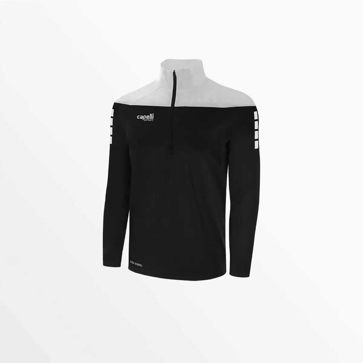 Designed for all training needs, the 1/4 zip Tribeca Training Jacket features  knit side panels, hidden zip pockets and the Tribeca training line signature embossed upper panel. Â
