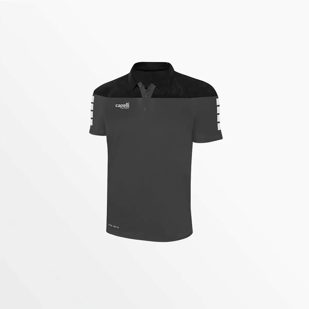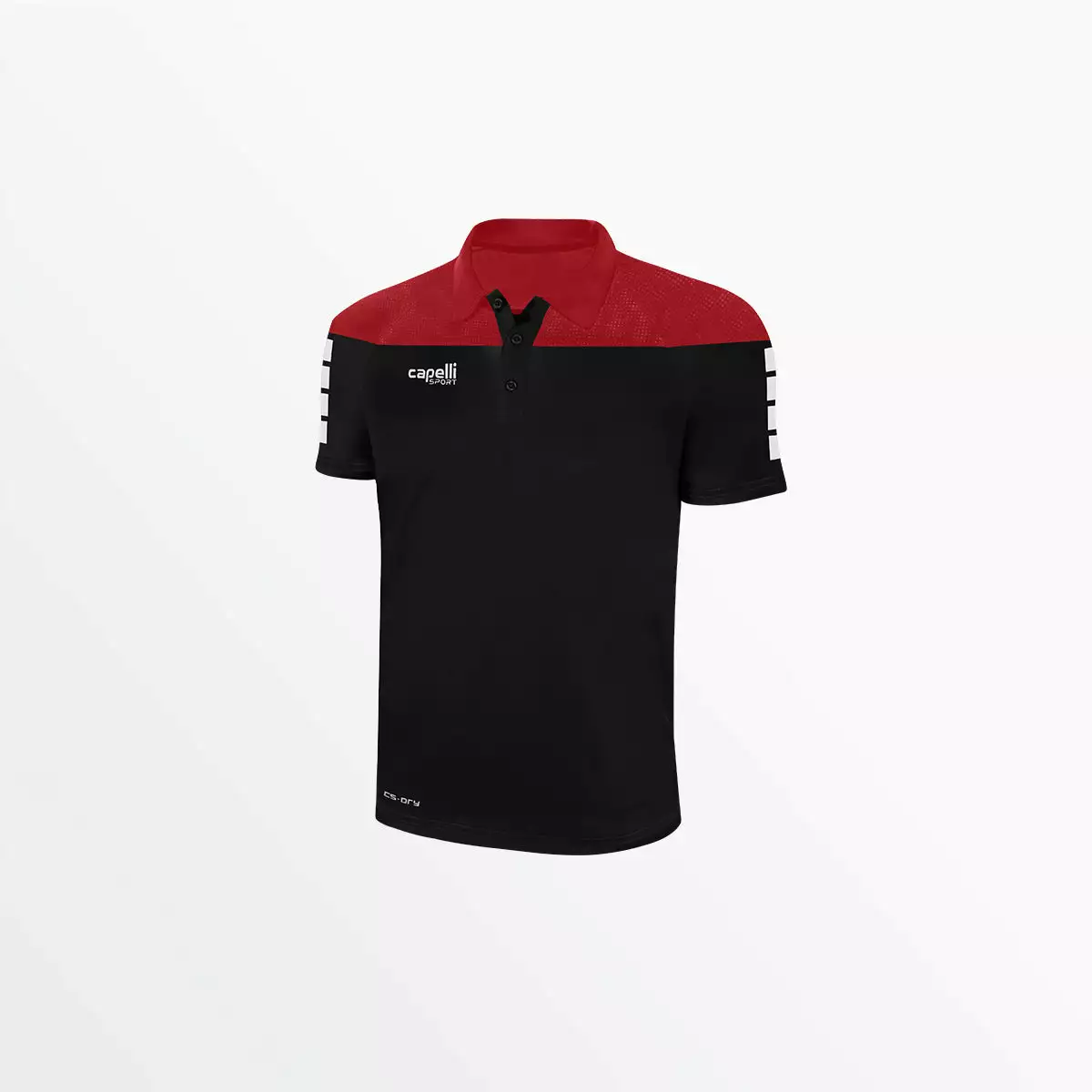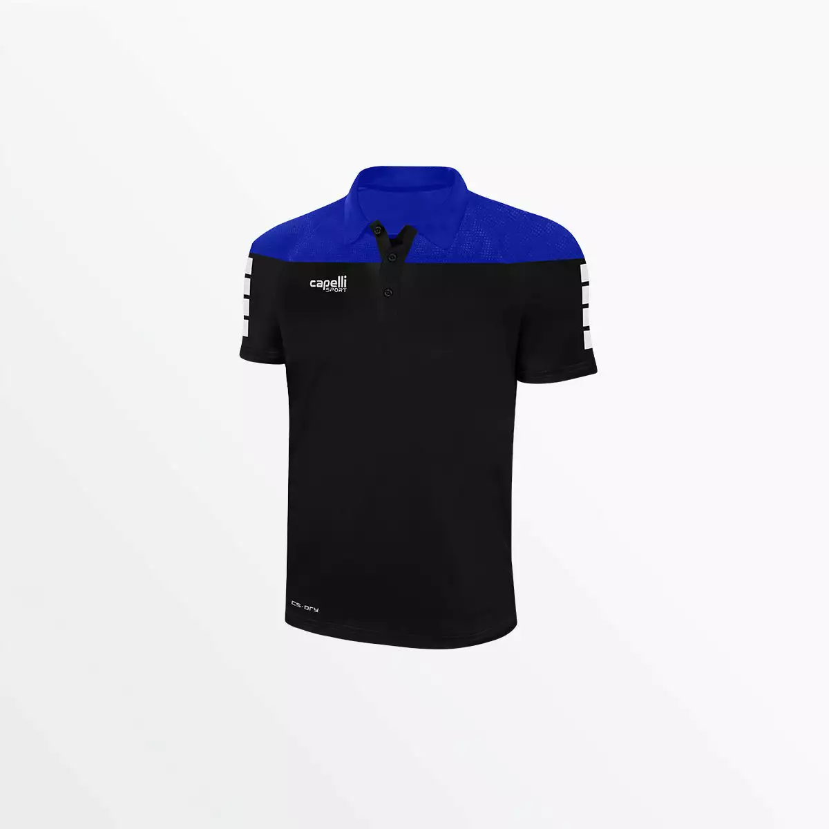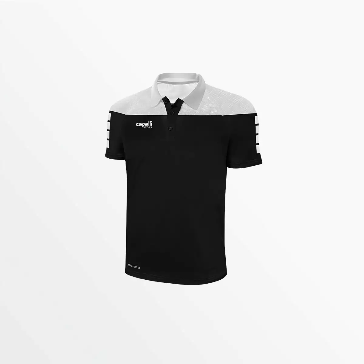 The versatile Tribeca Poly Polo features a rib knit collar over the Tribeca training line signature embossed upper panel to create a professional look that can easily transition between the field and post-practice activities.
