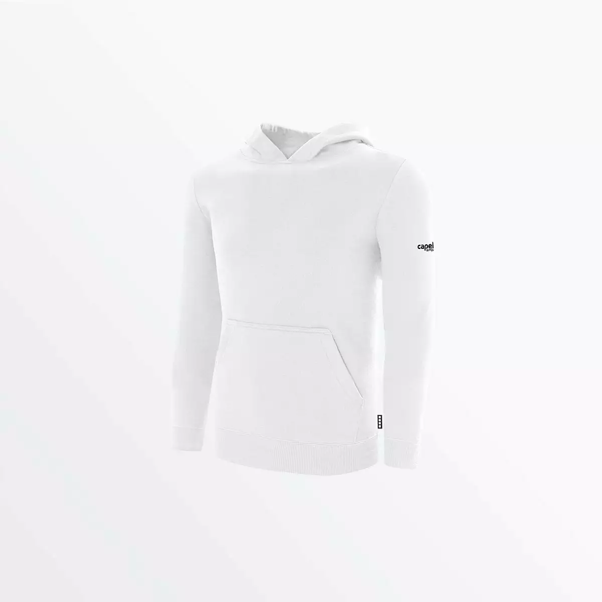 Our softest fleece Pullover Hoodie now available with fresh new prints. The repeating angular text and geometric shapes on the back gives these classic hoodies a modern and graphic update, adding subtle interest to any outfit.