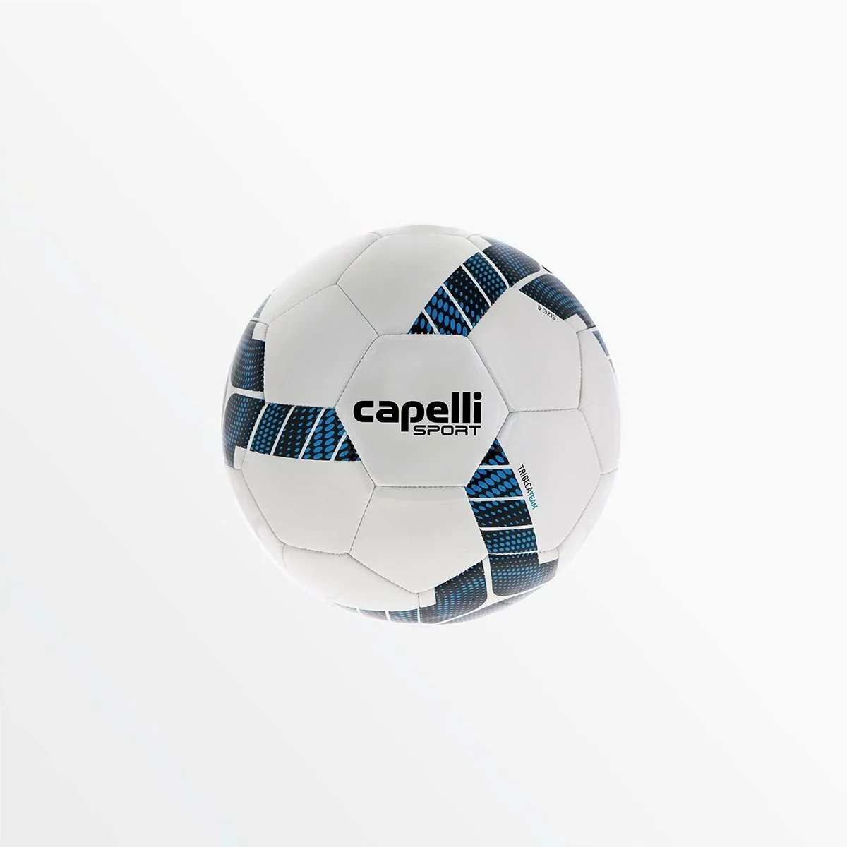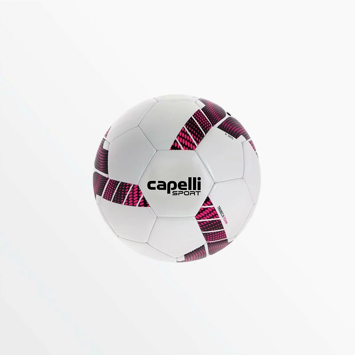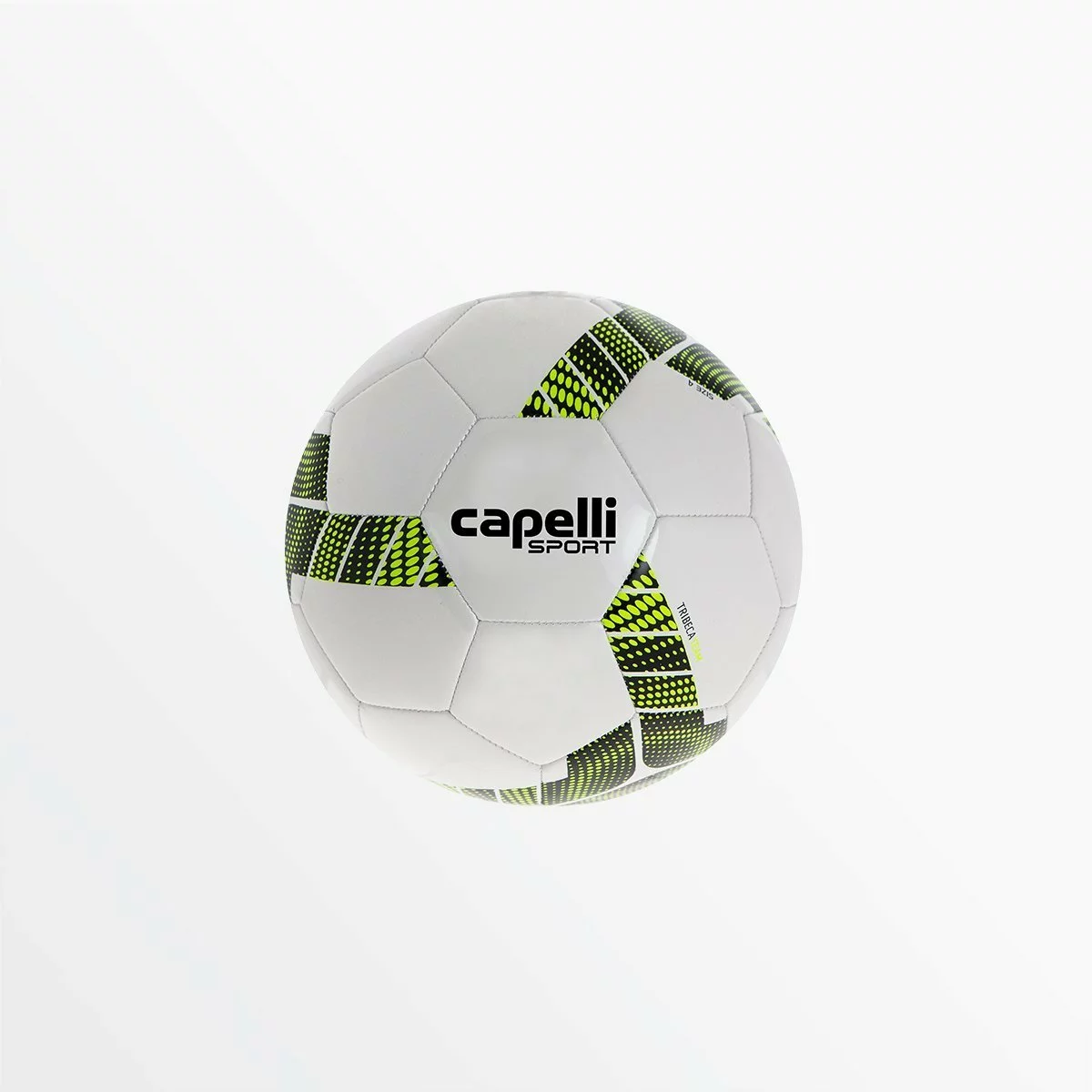 Designed specifically for practice and newer soccer players, the Tribeca Team ball is machine stitched with a  shiny TPU outer surface, TPE foam and butyl bladder. The Tribeca pattern gives a dynamic rotational appearance when in action on the field.Â