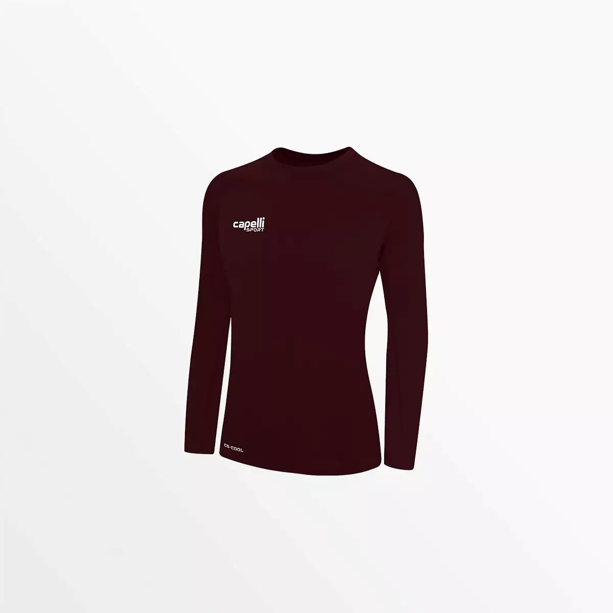The Basics I Long Sleeve Training Top is designed for all the ways you work out. The soft, lightweight CS-COOL fabric wicks sweat and dries fast, and with built-in vent holes under the arms it is incredibly breathable for even the sweatiest of practices.Â