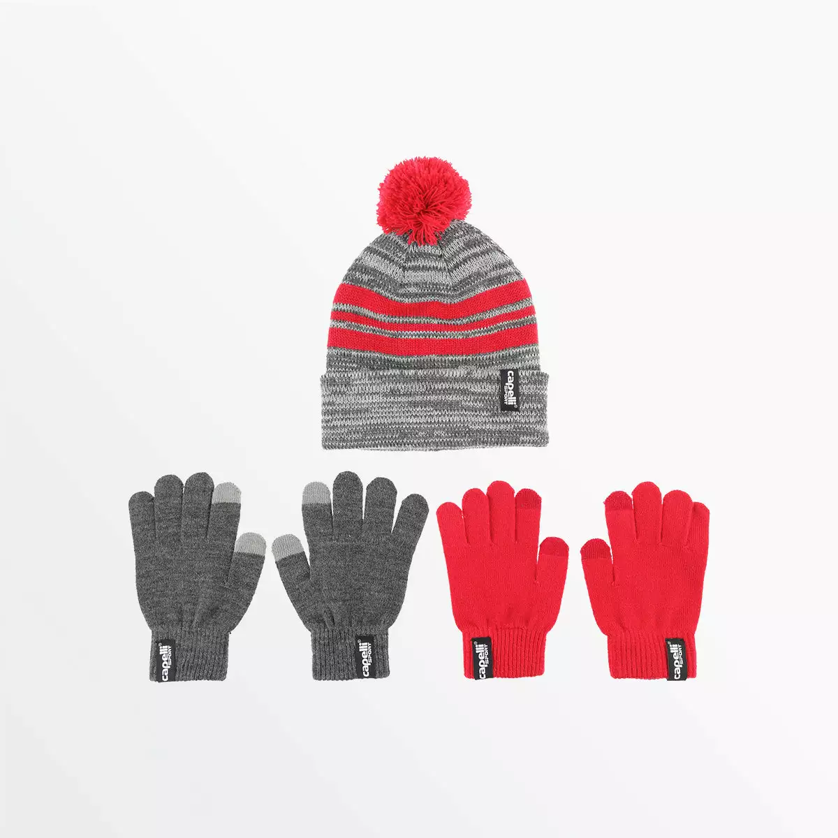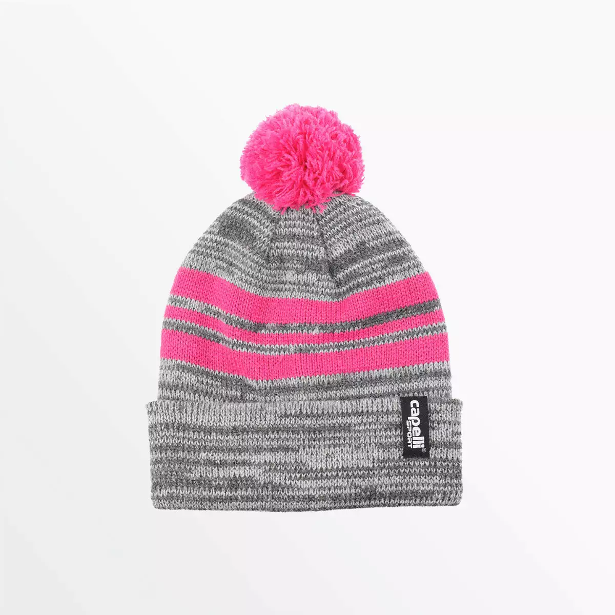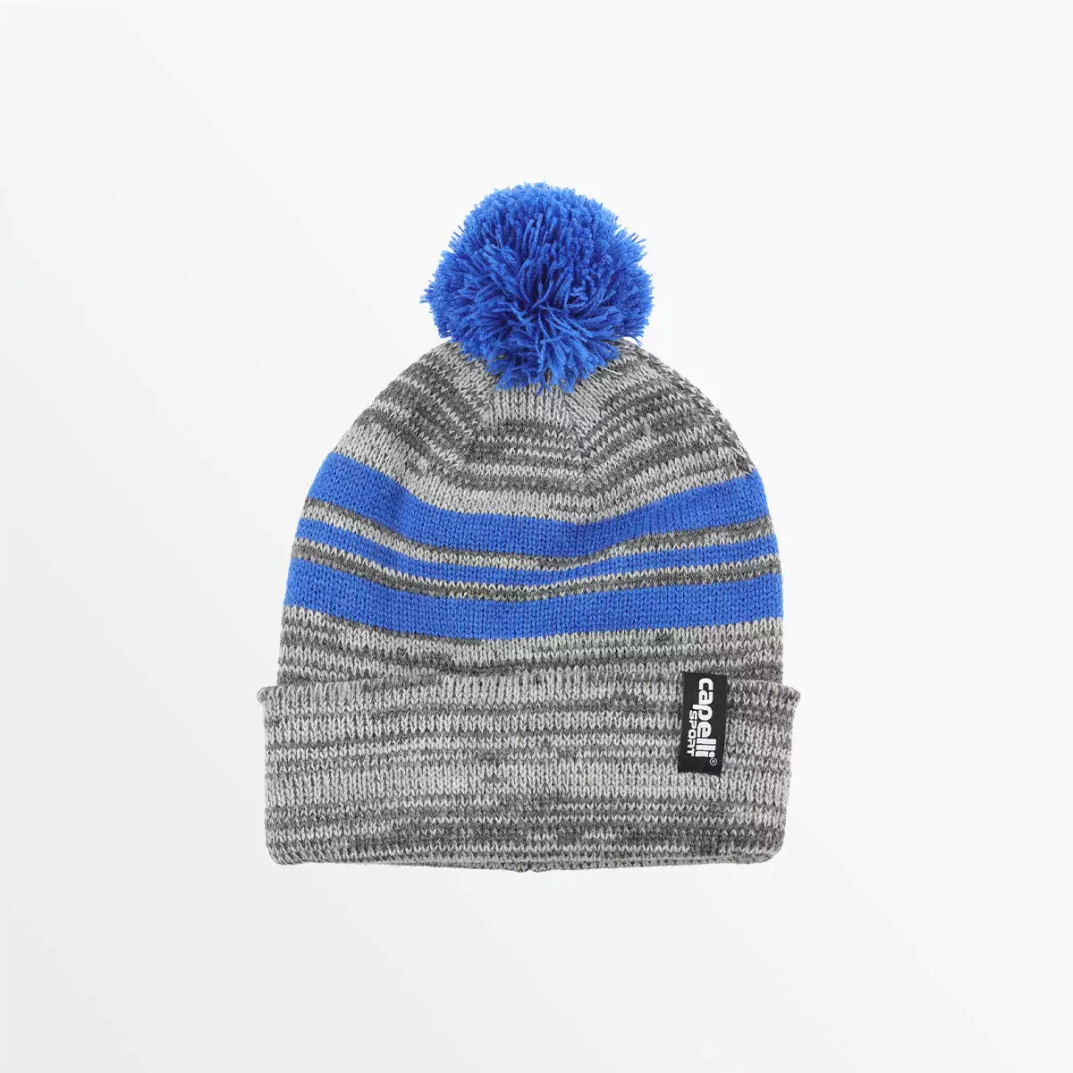 The Youth Striped Hat with Gloves set comes with two matching sets of gloves to go along with the striped pom beanie to keep your little ones warm throughout the winter months. The cuffed brim creates a nice, snug fit for the ultimate comfort.