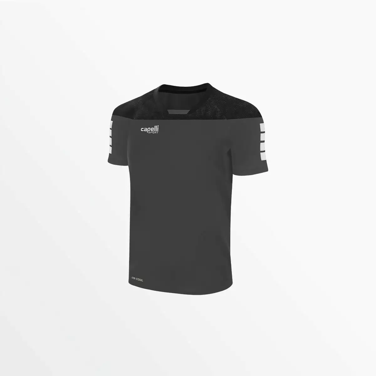 The Tribeca Short Sleeve Training Top keeps you cool and dry with mesh side and underarm panels and is finished off with design details including embroidered CS cubes, chest logo and the Tribeca training line signature embossed upper panel.