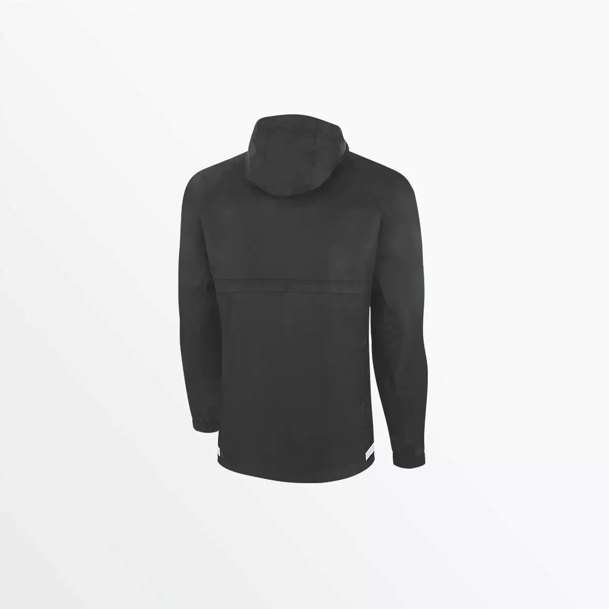 The water and wind repellent woven material of the Uptown Rain Jacket will keep you dry and warm during rainy days. Elastic cuffs help to further insulate while the mesh lining and the covered opening on the back wicks away moisture and increases airflow.