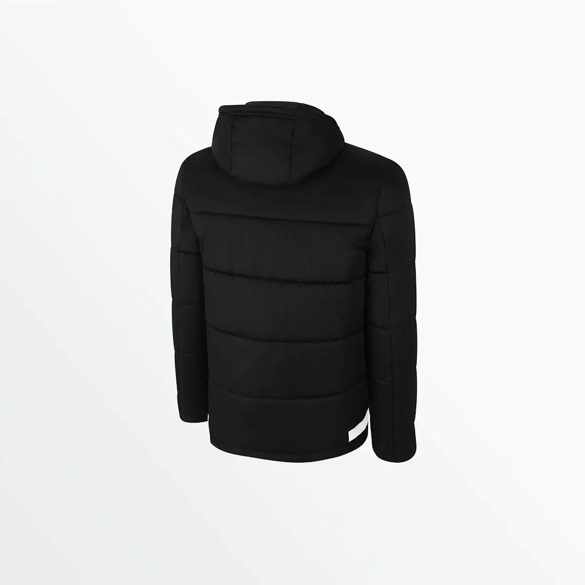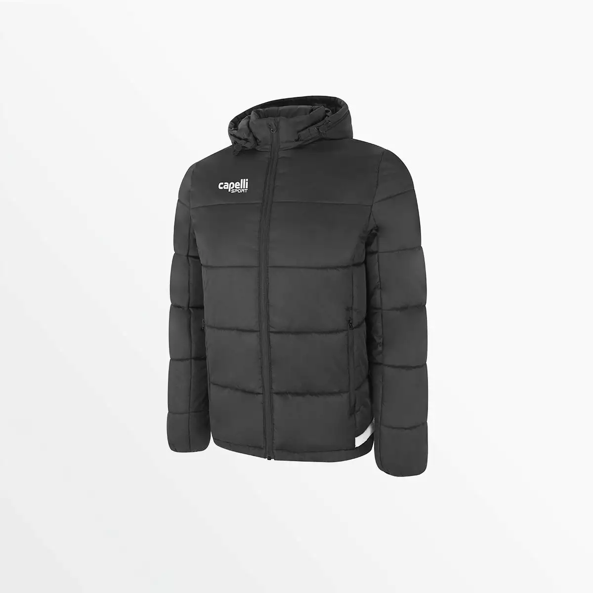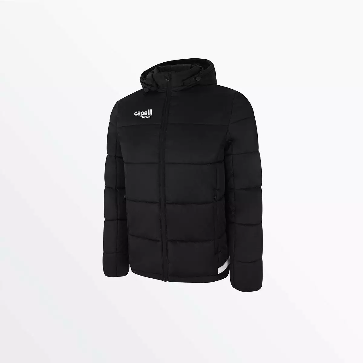 The Uptown Short Winter Jacket uses fiberfill to provide extra warmth and comfort. Features include a fleece lined collar, removable hood, zippered pockets and the signature Uptown stripe along the bottom hem.